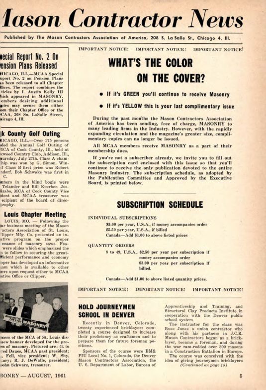 Masonry Magazine August 1961 Page. 5