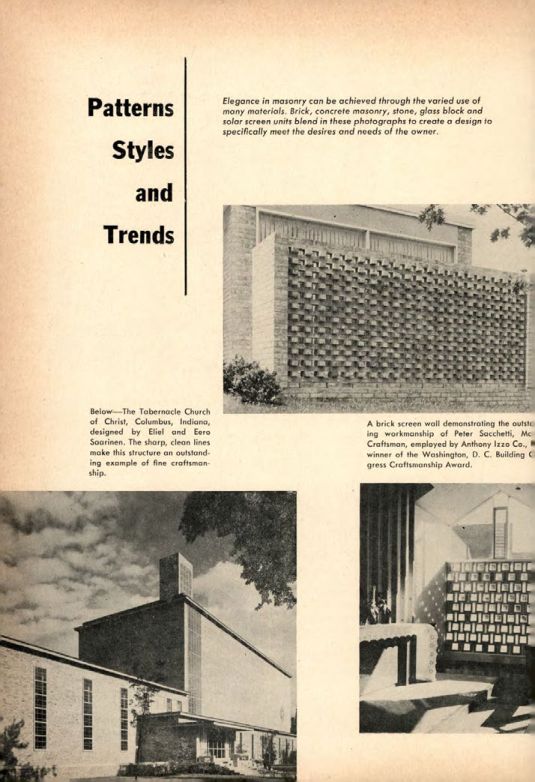 Below The Tabernacle Church of Christ, Columbus, Indiana, designed by Eliel and Eero Saarinen. The sharp, clean lines make this structure an outstanding example of fine craftsmanship.