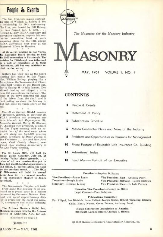 The San Francisco mason contracting firm of William A. Rainey & Son is celebrating its 60th anniversary. The firm, now headed by Bill Rainey, Sr., was formed Jan. 1, 1901.