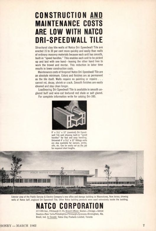 CONSTRUCTION AND MAINTENANCE COSTS ARE LOW WITH NATCO DRI-SPEEDWALL TILE