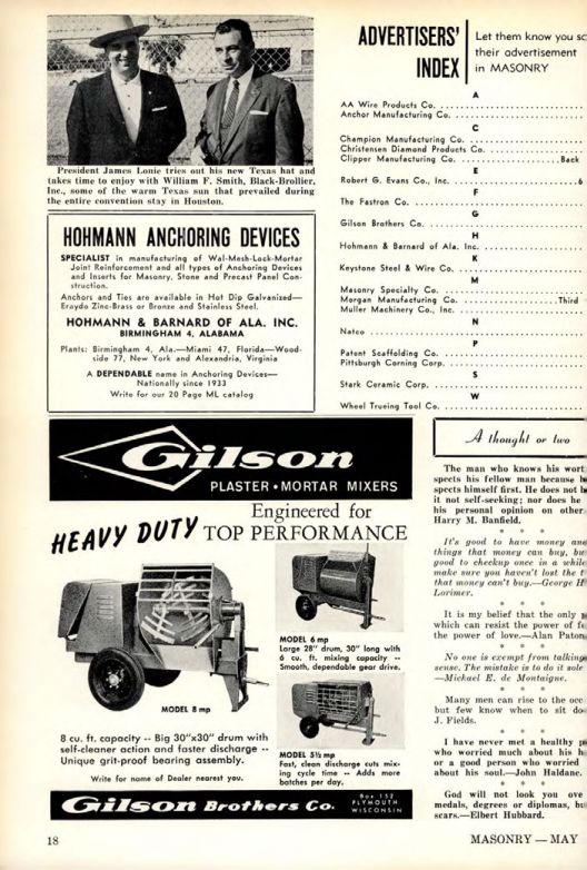 President James Lonie tries out his new Texas hat and takes time to enjoy with William F. Smith, Black-Brollier. Inc., some of the warm Texas sun that prevailed during the entire convention stay in Houston.