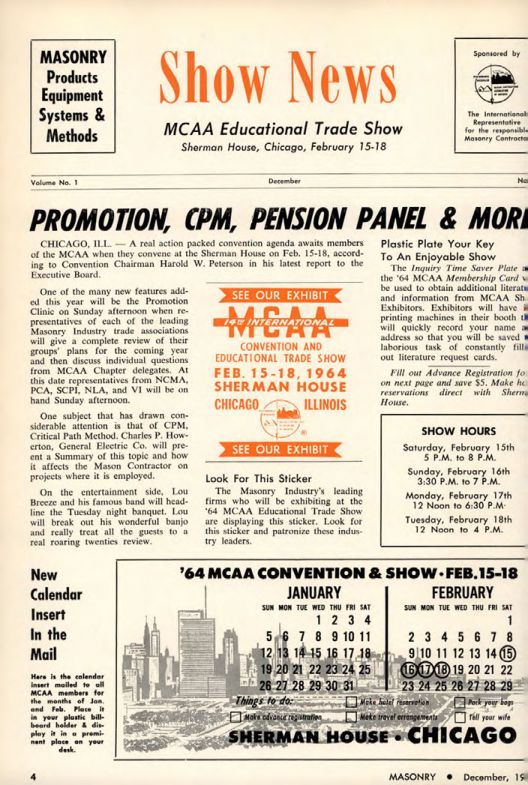 The Masonry Industry's leading firms who will be exhibiting at the '64 MCAA Educational Trade Show are displaying this sticker. Look for this sticker and patronize these industry leaders.