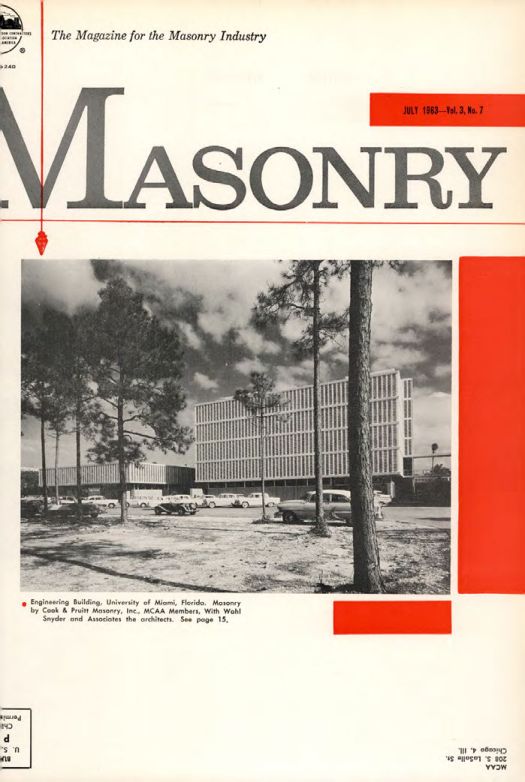 Engineering Building, University of Miami, Florida. Masonry by Cook & Pruitt Masonry, Inc., MCAA Members, With Wahl Snyder and Associates the architects. See page 15.