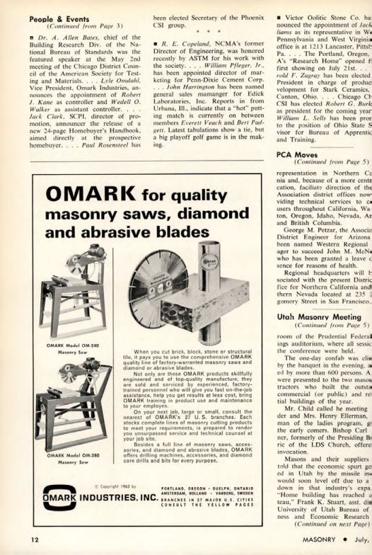 On your next job, large or small, consult the nearest of OMARK's 27 U. S. branches. Each stocks complete lines of masonry cutting products to meet your requirements, is prepared to render you unsurpassed service and technical counsel at your job site.