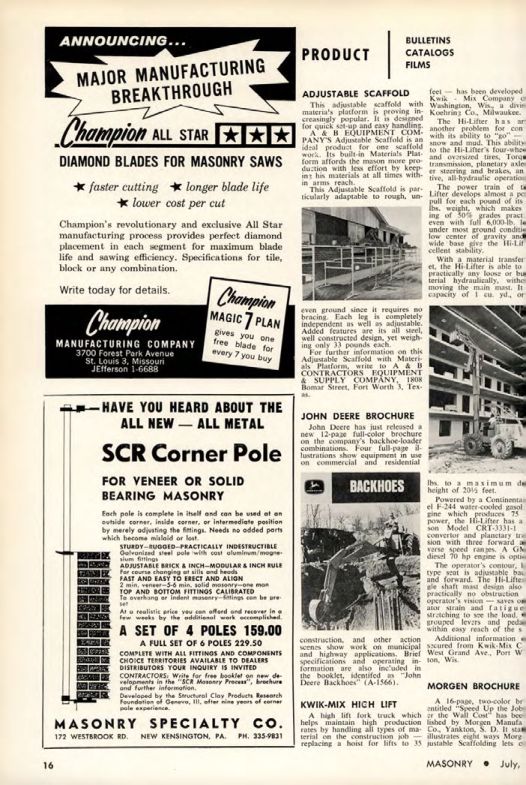 CONTRACTORS: Write for free booklet on new developments in the "SCR Masonry Process", brochure and further information.