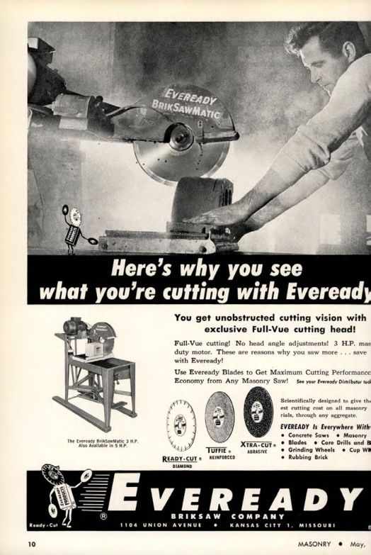 Use Eveready Blades to Get Maximum Cutting Performance Economy from Any Masonry Saw! See your Eveready Distributor foo