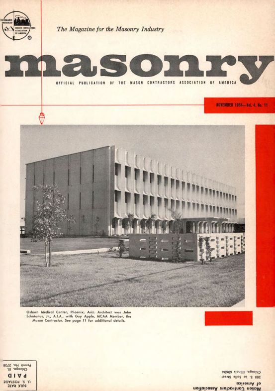 Osborn Medical Center, Phoenix, Ariz. Architect was John Schotanus, Jr., A.L.A., with Guy Apple, MCAA Member, the Mason Contractor. See page 11 for additional details.