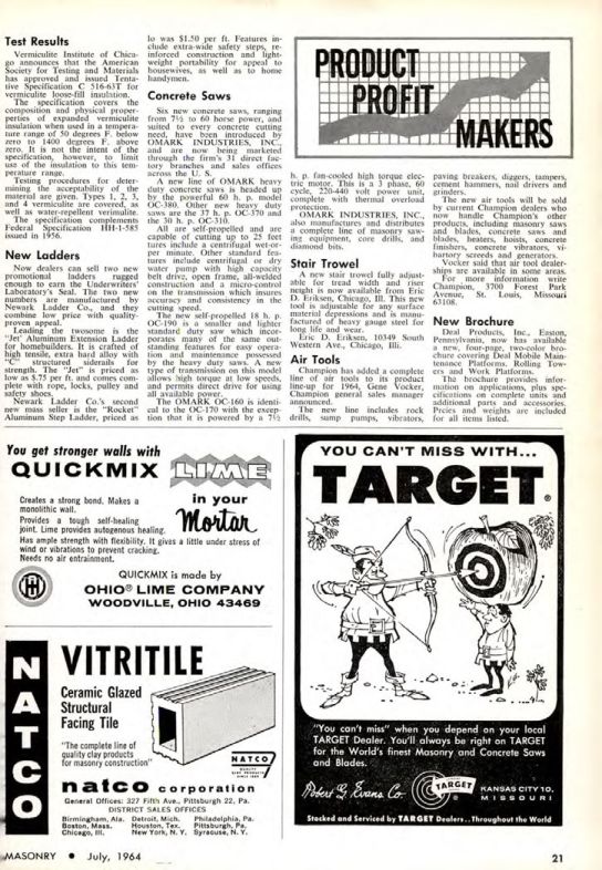 OMARK INDUSTRIES, INC., also manufactures and distributes a complete line of masonry sawing equipment, core drills, and diamond bits.