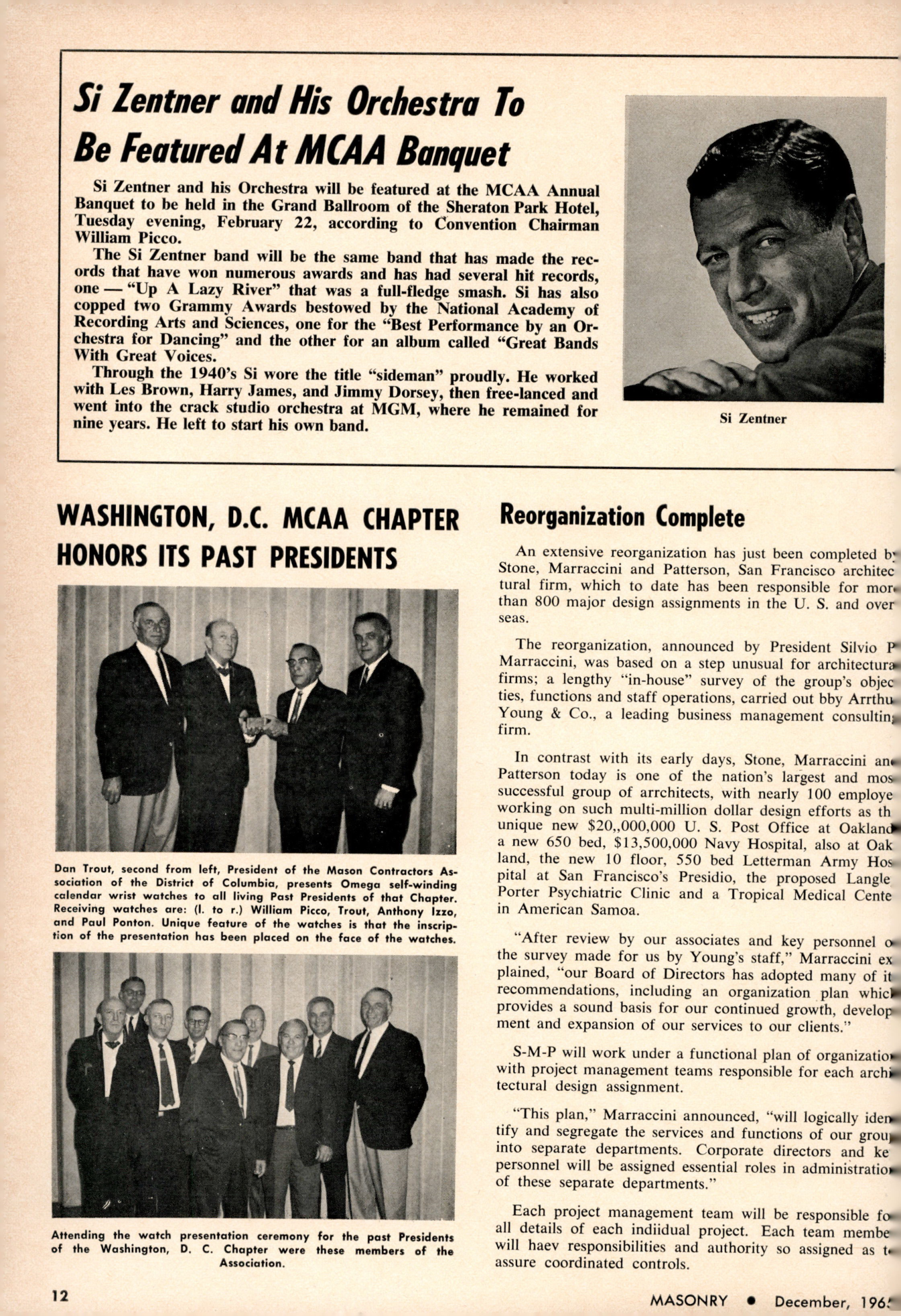 Si Zentner and his Orchestra will be featured at the MCAA Annual Banquet to be held in the Grand Ballroom of the Sheraton Park Hotel, Tuesday evening, February 22, according to Convention Chairman William Picco.