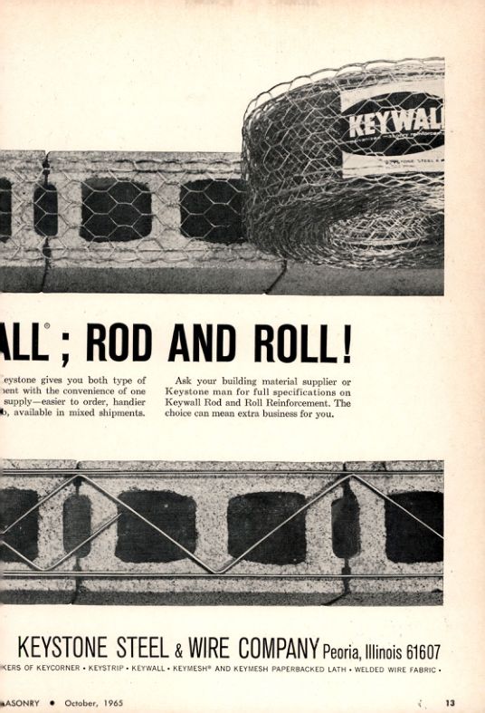 Ask your building material supplier or Keystone man for full specifications on Keywall Rod and Roll Reinforcement. The choice can mean extra business for you.