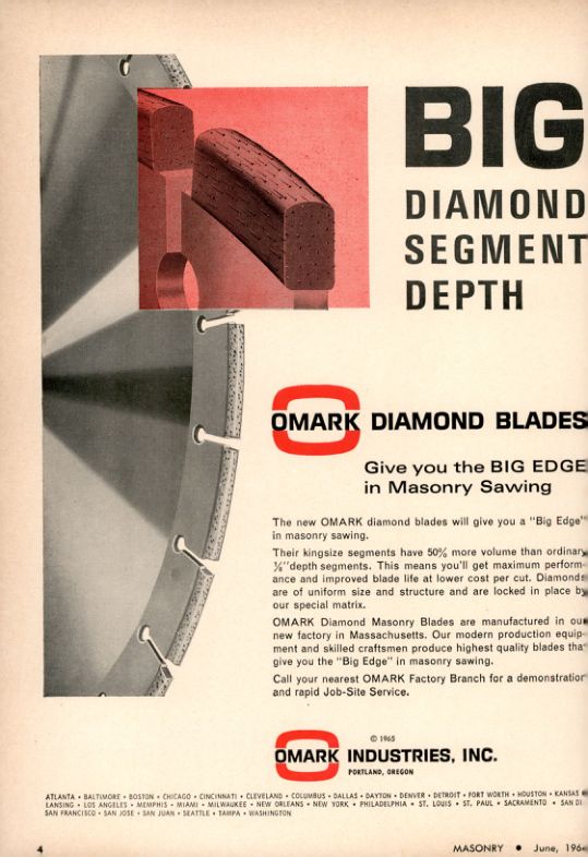 The new OMARK diamond blades will give you a "Big Edge" in masonry sawing.