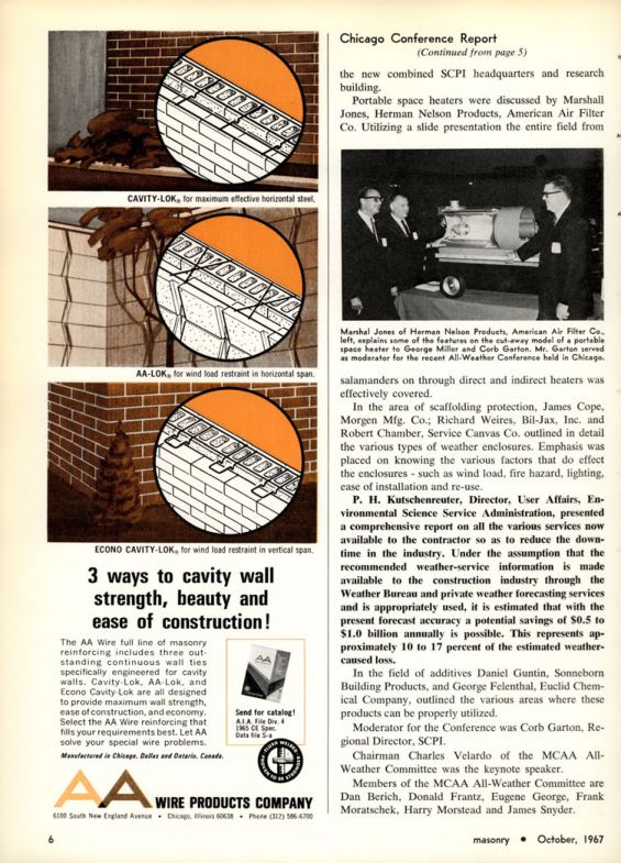 In the area of scaffolding protection, James Cope, Morgen Mfg. Co.; Richard Weires, Bil-Jax, Inc. and Robert Chamber, Service Canvas Co. outlined in detail the various types of weather enclosures. Emphasis was placed on knowing the various factors that do effect the enclosures - such as wind load, fire hazard, lighting, ease of installation and re-use.