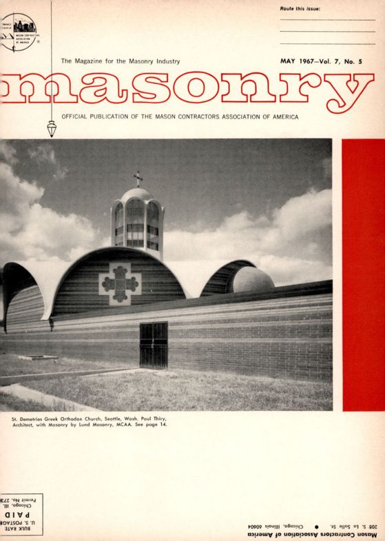 St. Demetrios Greek Orthodox Church, Seattle, Wash. Paul Thiry, Architect, with Masonry by Lund Masonry, MCAA. See page 14.