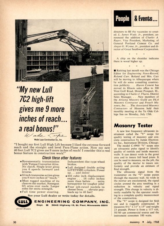 "I bought my first Lull High Lift because I liked the extreme forward reach and the straight and level Para-Plane action. Now my new 40 foot Lull 7C2 gives me 9 more inches of reach! I consider this a real bonus feature in construction work!"