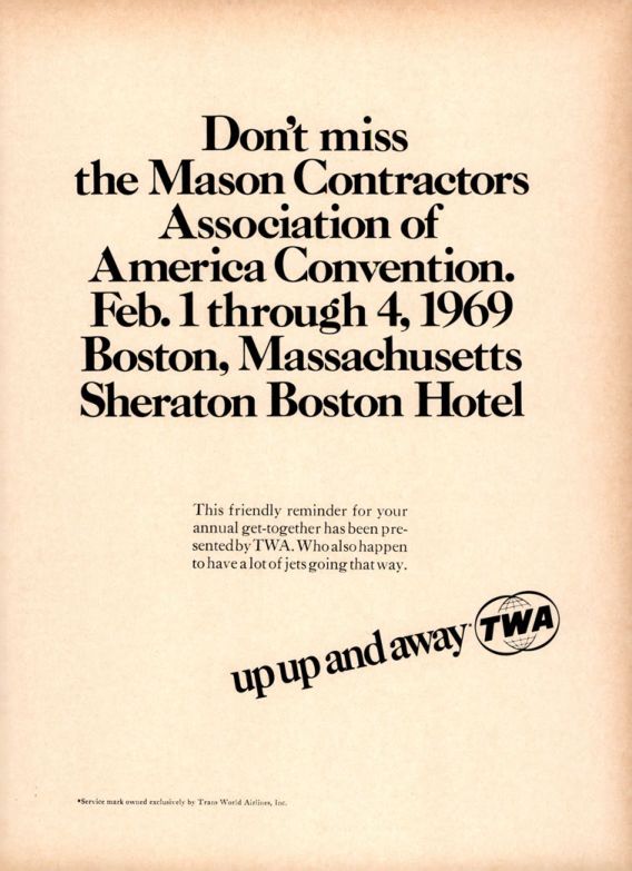Don't miss the Mason Contractors Association of America Convention. Feb. 1 through 4, 1969, Boston, Massachusetts, Sheraton Boston Hotel.