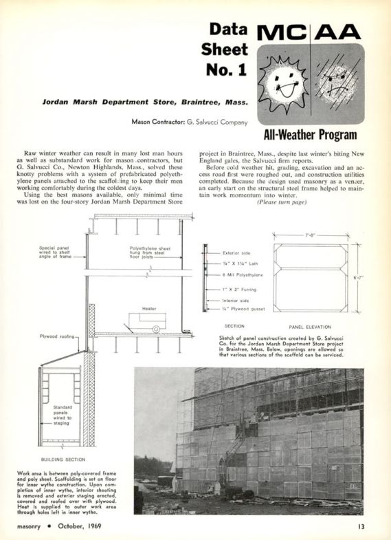 Using the best masons available, only minimal time was lost on the four-story Jordan Marsh Department Store project in Braintree, Mass., despite last winter's biting New England gales, the Salvucci firm reports.