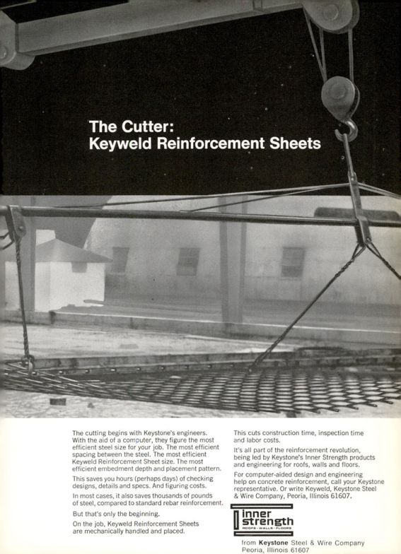 For computer-aided design and and engineering help on concrete reinforcement, call your Keystone representative. Or write Keyweld, Keystone Steel & Wire Company, Peoria, Illinois 61607. inner strength HOOPS WALLS FLOORS from Keystone Steel & Wire Company Peoria, Illinois 61607