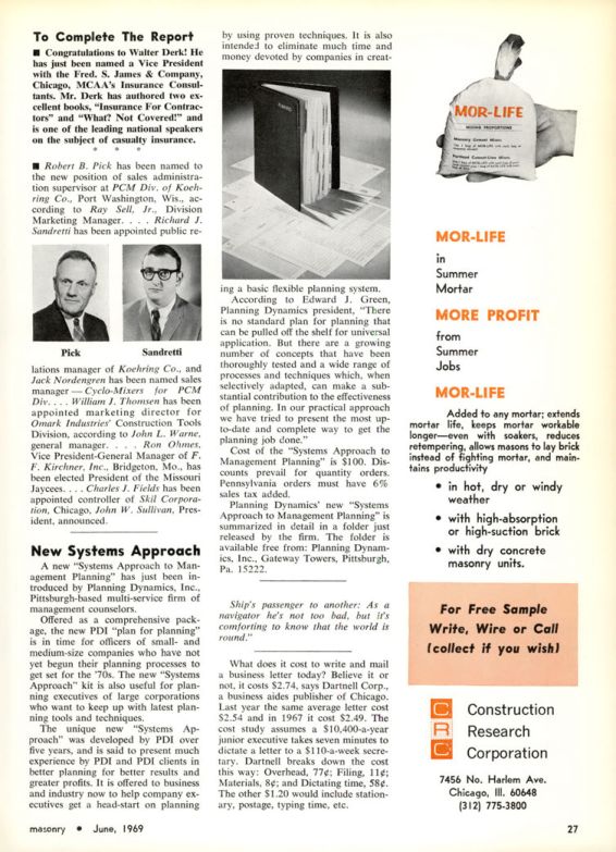 Robert B. Pick has been named to the new position of sales administration supervisor at PCM Div. of Koehring Co., Port Washington, Wis., according to Ray Sell, Jr., Division Marketing Manager. Richard J. Sandretti has been appointed public relations manager of Koehring Co., and Jack Nordengren has been named sales manager Cyclo-Mixers for PCM Div.... William J. Thomsen has been appointed marketing director for Omark Industries' Construction Tools Division, according to John L. Warne, general manager. Ron Ohmes, Vice President-General Manager of F. F. Kirchner, Inc., Bridgeton, Mo., has been elected President of the Missouri Jaycees.. Charles J. Fields has been appointed controller of Skil Corporation, Chicago, John W. Sullivan, President, announced.