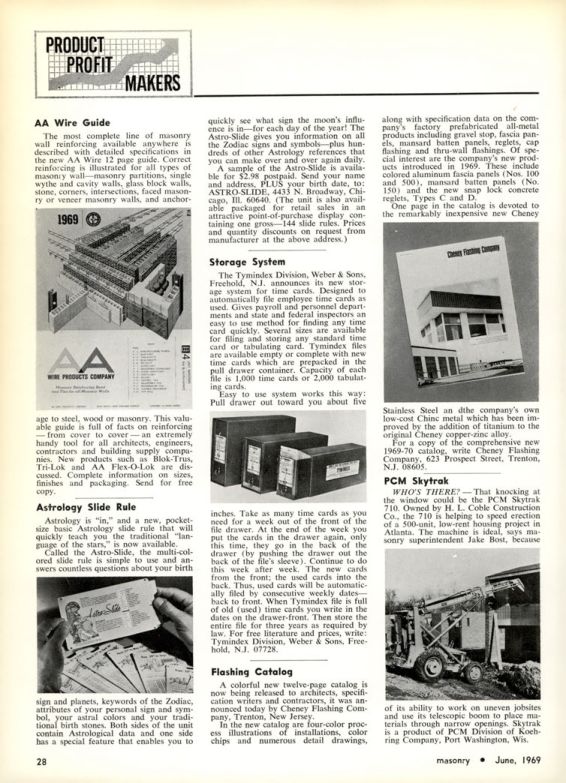 In the new catalog are four-color process illustrations of installations, color chips and numerous detail drawings, along with specification data on the company's factory prefabricated all-metal products including gravel stop, fascia panels, mansard batten panels, reglets, cap flashing and thru-wall flashings. Of special interest are the company's new products introduced in 1969. These include colored aluminum fascia panels (Nos. 100 and 500), mansard batten panels (No. 150) and the new snap lock concrete reglets, Types C and D.