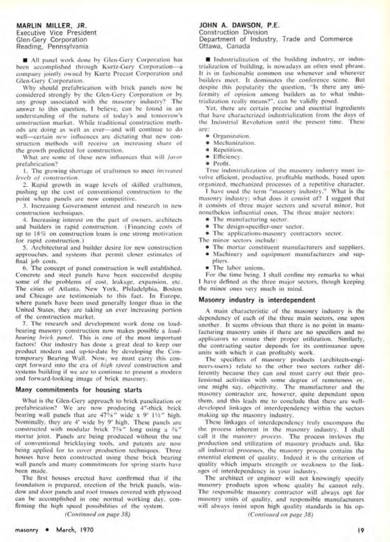 True industrialization of the masonry industry must involve efficient, productive, profitable methods, based upon organized, mechanized processes of a repetitive character.