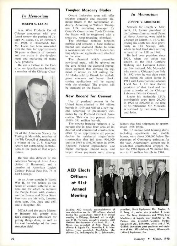 A.A. Wire Products Co. of Chicago announces with profound sorrow the passing of Joseph N. Lucas, 51, on February 25, 1970, in Hammond, Ind. Mr. Lucas had been associated with the firm for approximately 20 years as director of research and was active in the development and marketing of many A.A. products.