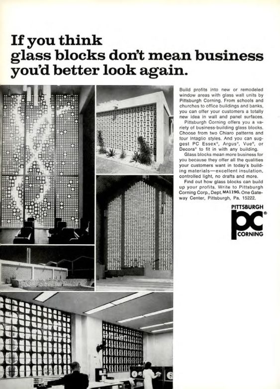 Find out how glass blocks can build up your profits. Write to Pittsburgh Corning Corp., Dept, MA119G, One Gateway Center, Pittsburgh, Pa. 15222.