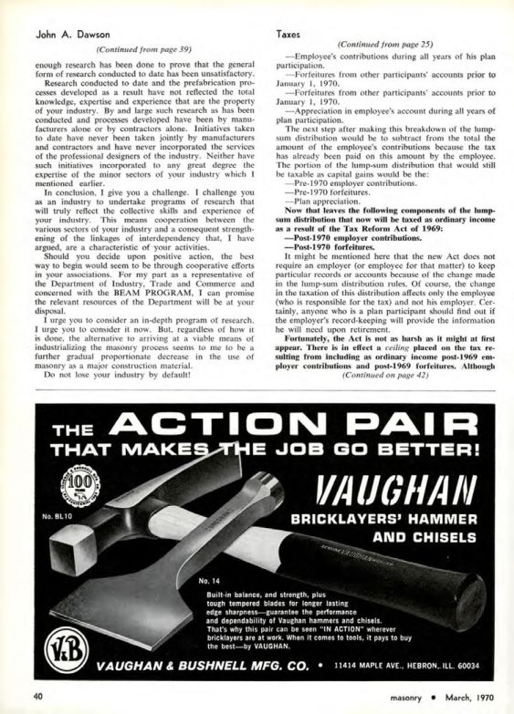 I urge you to consider an in-depth program of research. I urge you to consider it now. But, regardless of how it is done, the alternative to arriving at a viable means of industrializing the masonry process seems to me to be a further gradual proportionate decrease in the use of masonry as a major construction material.