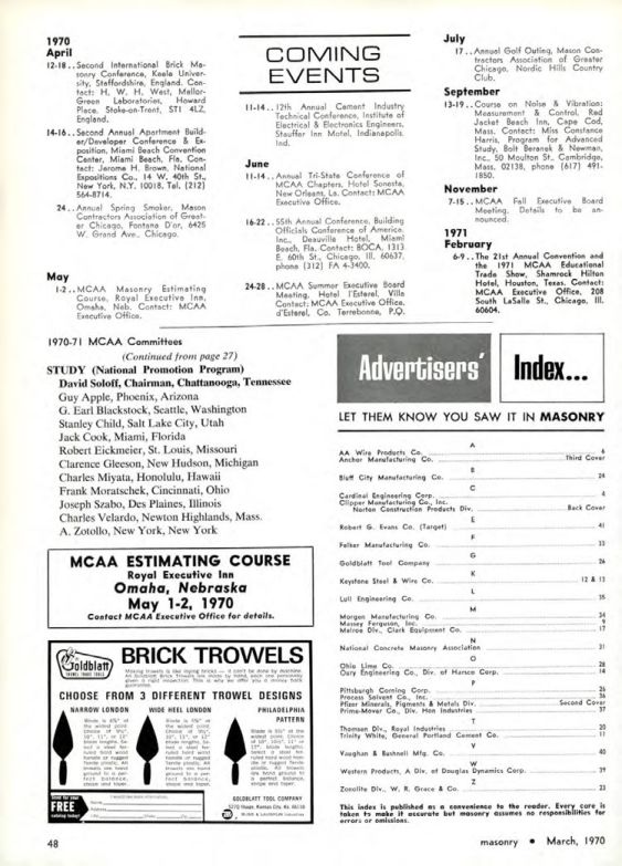 1-2..MCAA Masonry Estimating Course, Royal Executive Inn, Omaha, Neb. Contact: MCAA Executive Office.