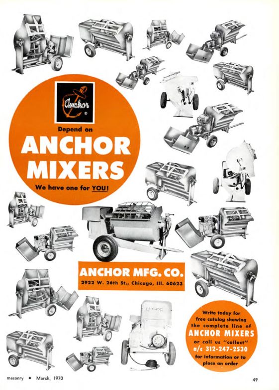 Write today for free catalog showing the complete line of ANCHOR MIXERS or call us "collect" a/c 312-247-2530 for information or to place an order