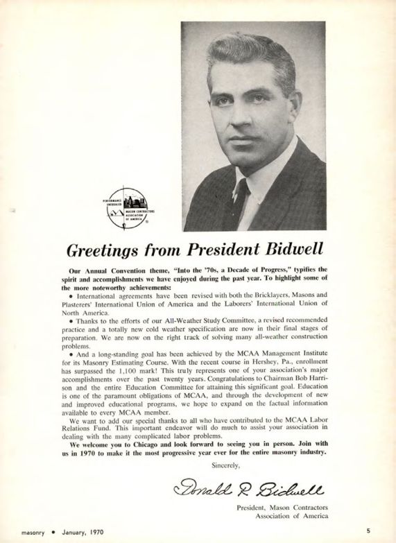 We welcome you to Chicago and look forward to seeing you in person. Join with us in 1970 to make it the most progressive year ever for the entire masonry industry.
