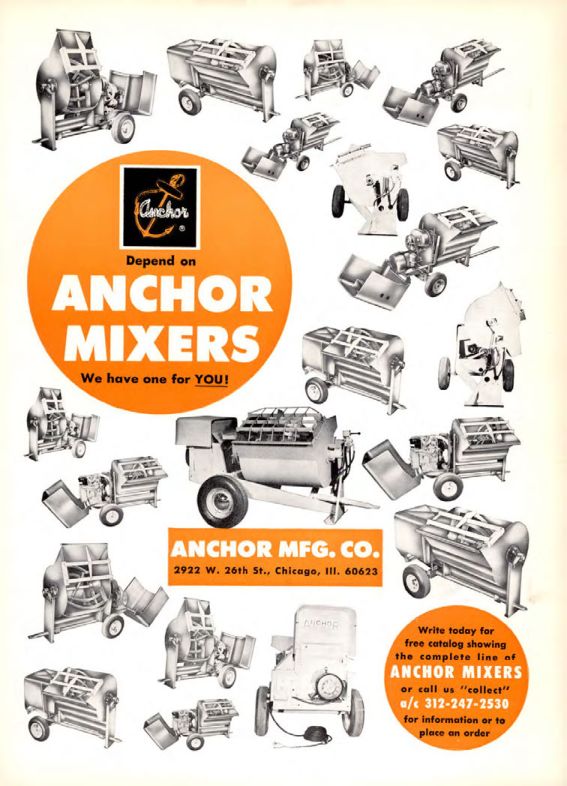 Write today for a free catalog showing the complete line of ANCHOR MIXERS or call us "collect" at 312-247-2530 for information or to place an order.