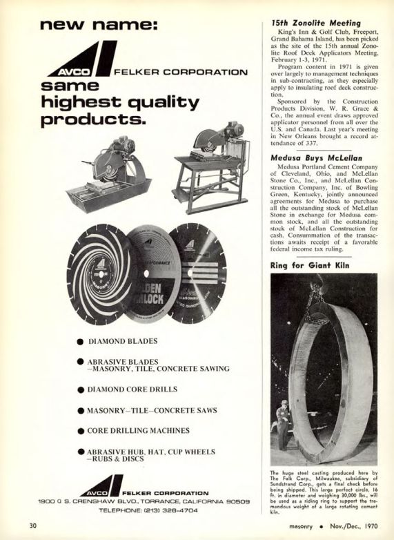 Medusa Portland Cement Company of Cleveland, Ohio, and McLellan Stone Co., Inc., and McLellan Construction Company, Inc. of Bowling Green, Kentucky, jointly announced agreements for Medusa to purchase all the outstanding stock of McLellan Stone in exchange for Medusa common stock, and all the outstanding stock of McLellan Construction for cash. Consummation of the transactions awaits receipt of a favorable federal income tax ruling.