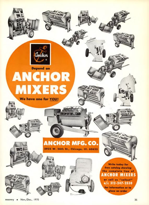 Write today for free catalog showing the complete line of ANCHOR MIXERS or call us "collect" a/c 312-247-2530 for information or to place an order.