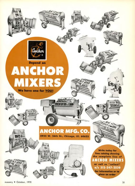 Write today for free catalog showing the complete line of ANCHOR MIXERS or call us "collect" a/c 312-247-2530 for information or to place an order