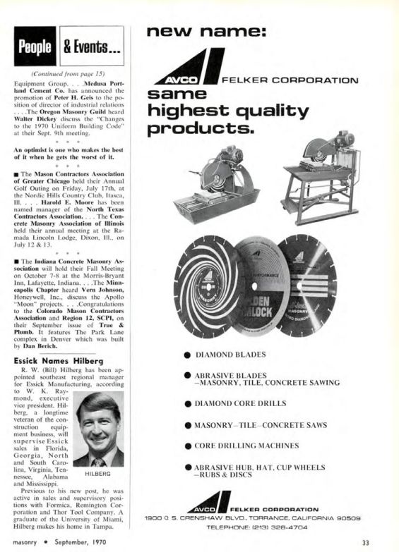 The Mason Contractors Association of Greater Chicago held their Annual Golf Outing on Friday, July 17th, at the Nordic Hills Country Club, Itasca, III. Harold E. Moore has been named manager of the North Texas Contractors Association. The Concrete Masonry Association of Illinois held their annual meeting at the Ramada Lincoln Lodge, Dixon, III., on July 12 & 13.