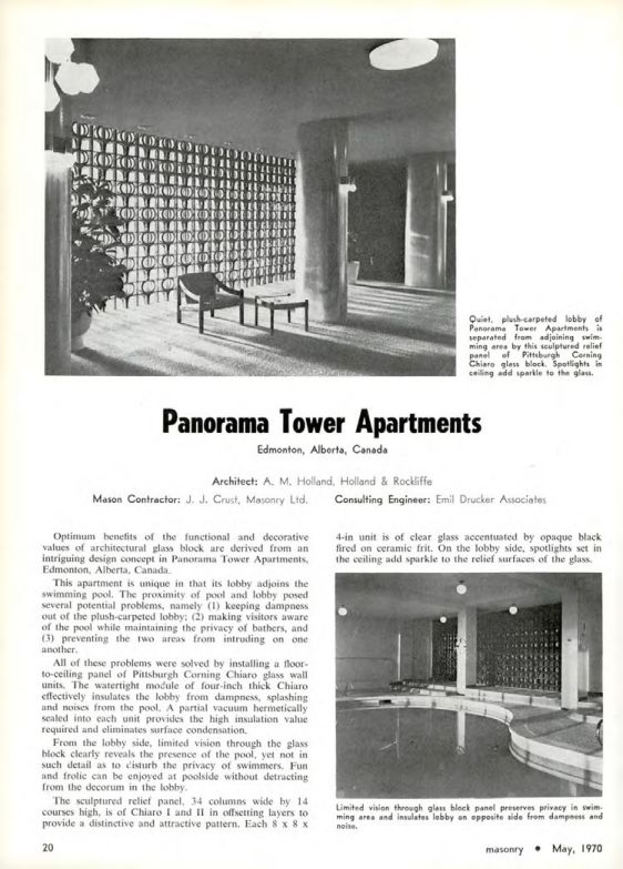 Optimum benefits of the functional and decorative values of architectural glass block are derived from an intriguing design concept in Panorama Tower Apartments, Edmonton, Alberta, Canada.