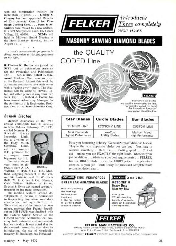 Have you been using ordinary "General Purpose" diamond blades? They're the most expensive blades you can buy! You have to sacrifice something Blade life Cutting speed... Cost of cut unless you use EXACTLY the right blade. Whatever your job conditions... Whatever your cost requirements... FELKER has the RIGHT blade... at the RIGHT price... application-oriented to your job! Write today for prices and complete blade recommendation chart.