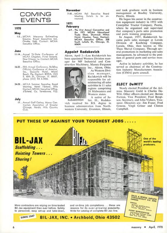 May 1-2..MCAA Masonry Estimating Course, Royal Executive Inn, Omaha, Neb. Contact: MCAA Executive Office.