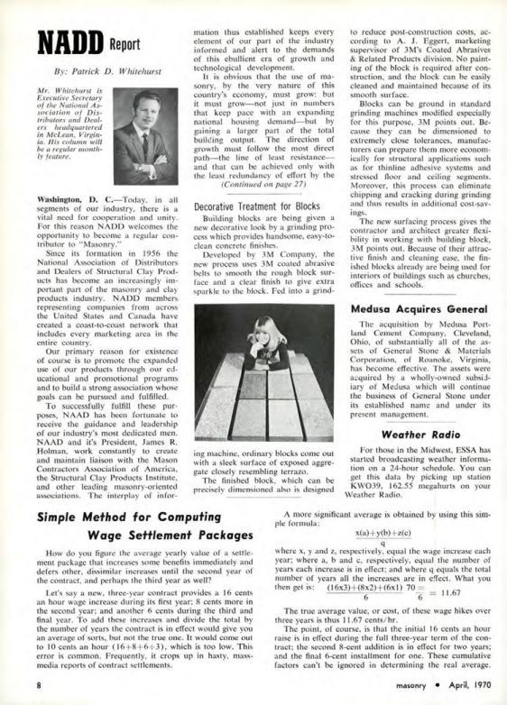 Washington, D. C. Today, in all segments of our industry, there is a vital need for cooperation and unity. For this reason NADD welcomes the opportunity to become a regular contributor to "Masonry."