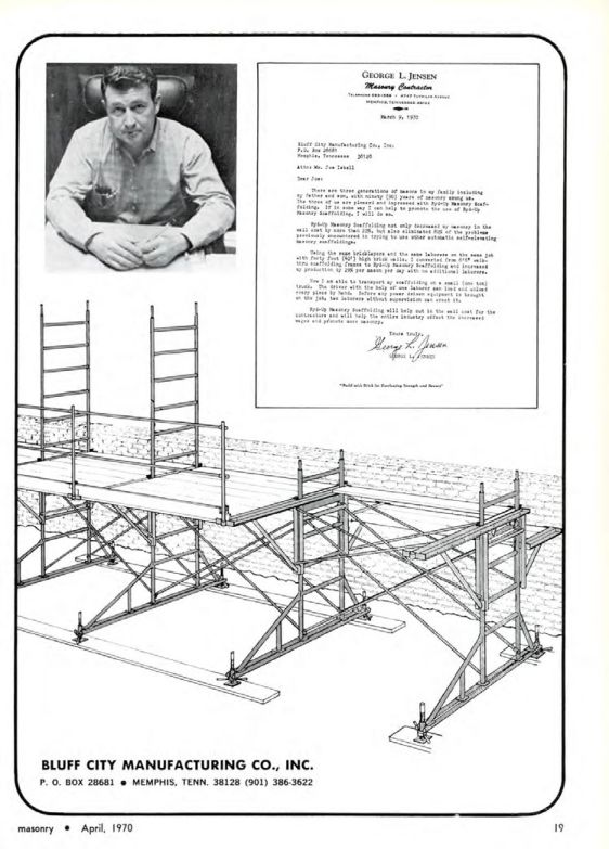 By-Bly Masonry Scaffolding not only increased my masonry in the wall start by more than 25%, but also eliminated 80% of the problems previously encountered in trying to use other automatic self-elevating masonry scaffolding.