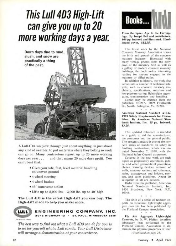 In addition to history, the work also delves into a number of technical subjects, such as concrete masonry machinery, specifications, autoclave and low-pressure curing, lightweight aggregates, transportation and handling.