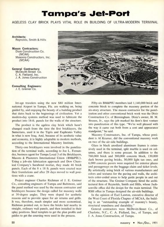 Masonry Constructors, Inc. of Tampa, whose president is Al Kramer, did the conventional masonry work on two of the air-side buildings.