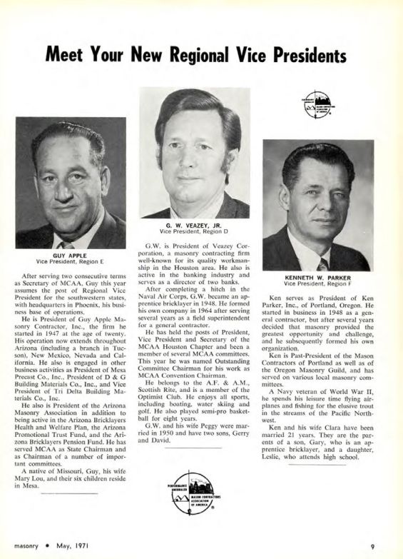 Ken serves as President of Ken Parker, Inc., of Portland, Oregon. He started in business in 1948 as a general contractor, but after several years decided that masonry provided the greatest opportunity and challenge, and he subsequently formed his own organization.