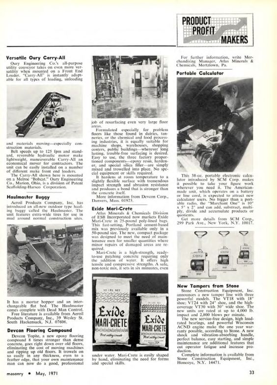 It has a mortar hopper and an interchangeable flat bed. The Haulmaster comes complete with Dead Man Control. Free literature is available from Aeroil Products Company, Inc., 39 Wesley St. South Hackensack, N.J. 07606.