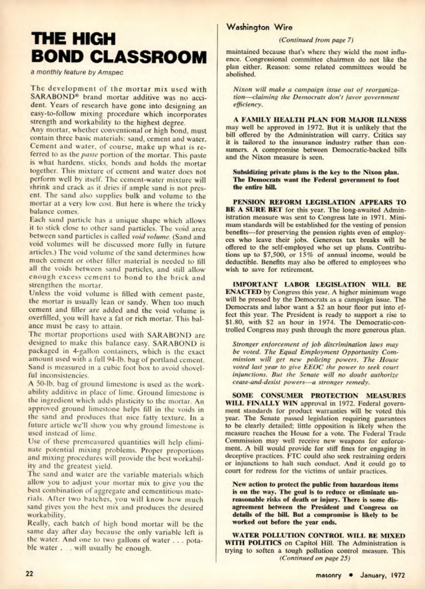 The mortar proportions used with SARABOND are designed to make this balance easy. SARABOND is packaged in 4-gallon containers, which is the exact amount used with a full 94-1b. bag of portland cement. Sand is measured in a cubic foot box to avoid shovel-ful inconsistencies.