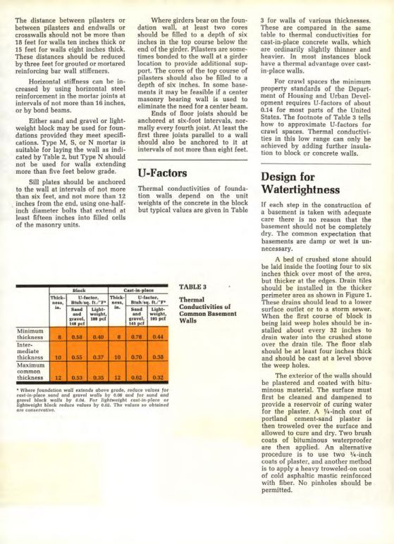Thermal conductivities of foundation walls depend on the unit weights of the concrete in the block but typical values are given in Table.