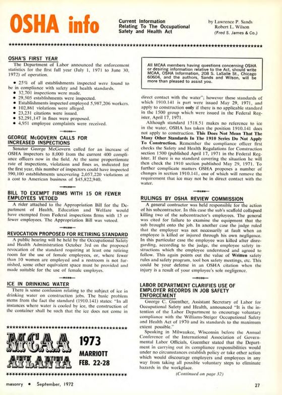All MCAA members having questions concerning OSHA or desiring information relative to the Act, should write MCAA, OSHA Information, 208 S. LaSalle St., Chicago 60604, and the authors, Sands and Wilson, will be more than pleased to assist you.