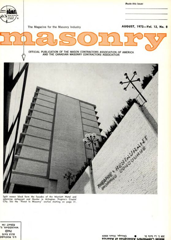 Split veneer block form the facades of the Marriott Hotel and adjoining restaurant and theater in Arlington, Virginia's Crystal City. See the "Finest In Masonry" section starting on page 31.