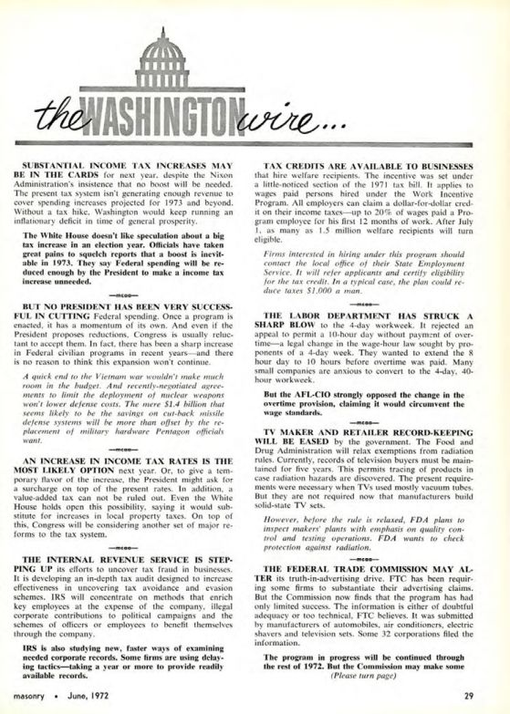 Tax credits are available to businesses that hire welfare recipients. The incentive was set under a little-noticed section of the 1971 tax bill. It applies to wages paid persons hired under the Work Incentive Program. All employers can claim a dollar-for-dollar credit on their income taxes-up to 20% of wages paid a Program employee for his first 12 months of work. After July 1. as many as 1.5 million welfare recipients will turn eligible.
