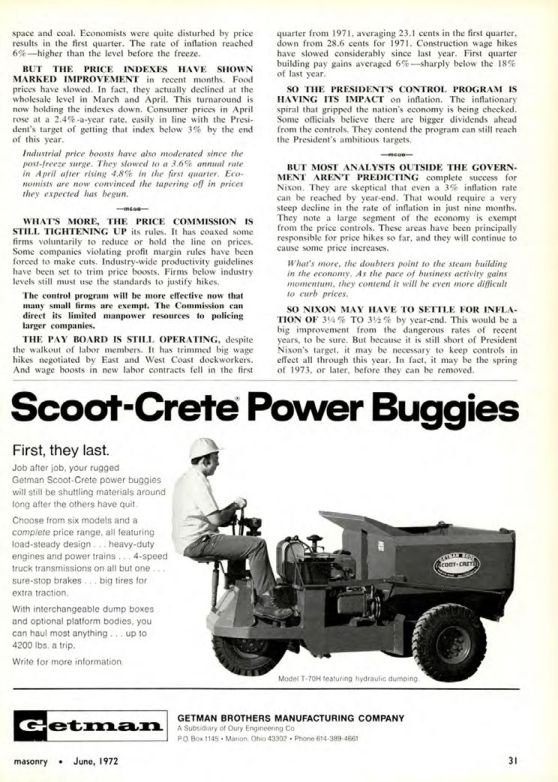 Job after job, your rugged Getman Scoot-Crete power buggies will still be shuttling materials around long after the others have quit.